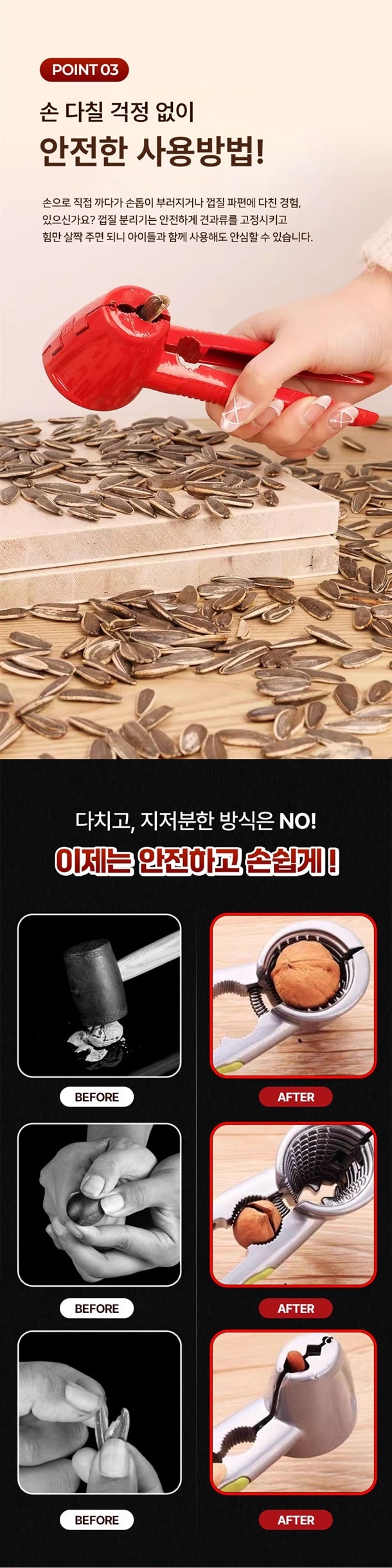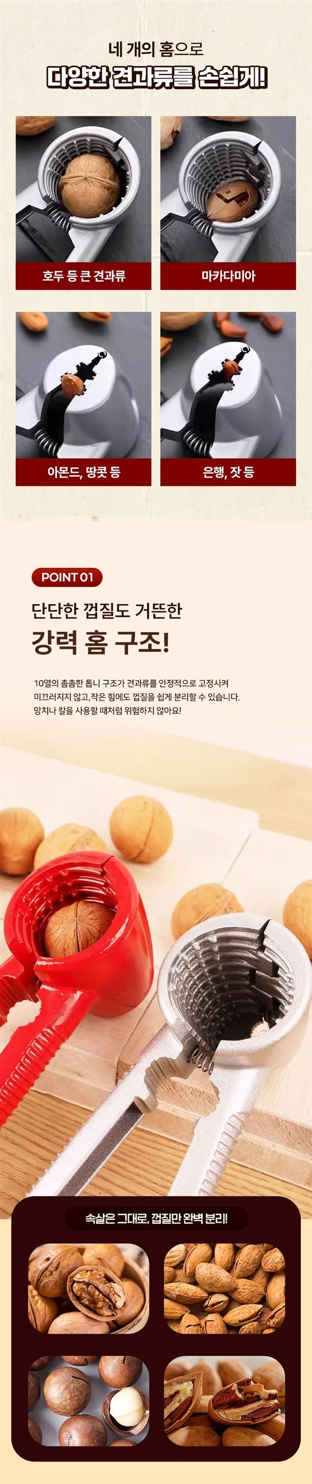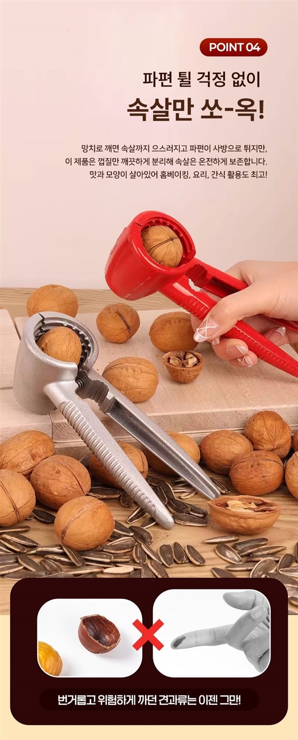 호두든 땅콩이든 그냥 깔때기처럼 생긴 통에 넣고 꾹 누르면 속은 밑으로 쏙~