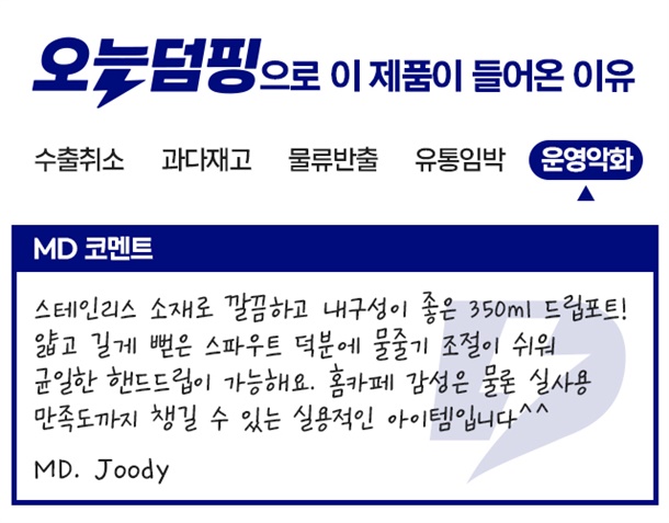 스테인리스 소재로 깔끔하고 내구성이 좋은 350ml 드립포트!