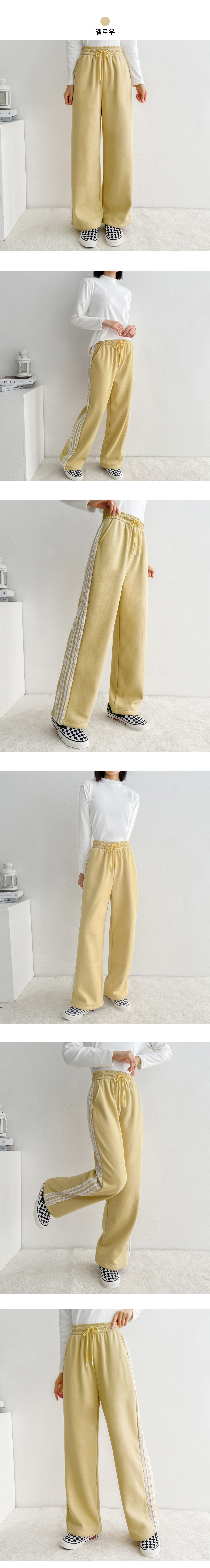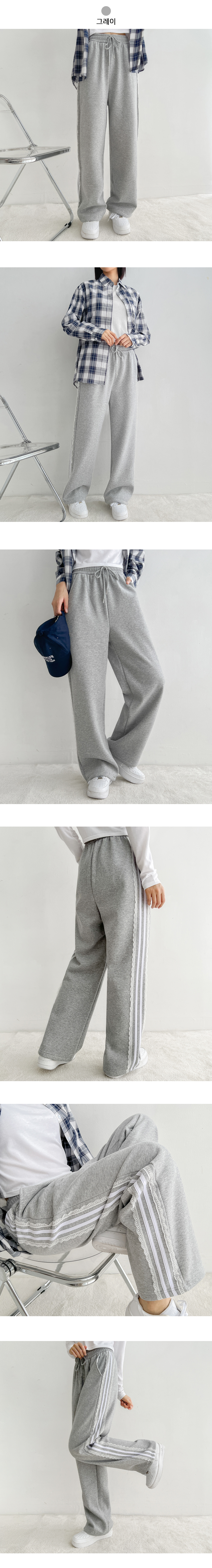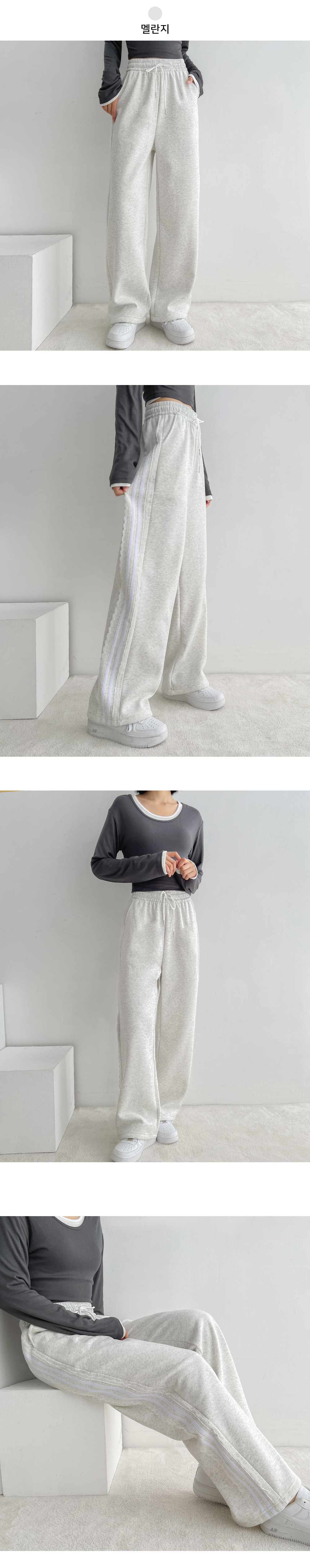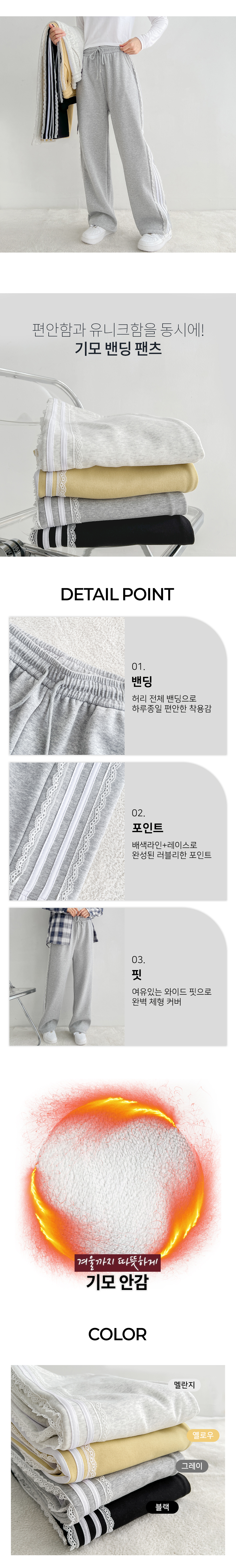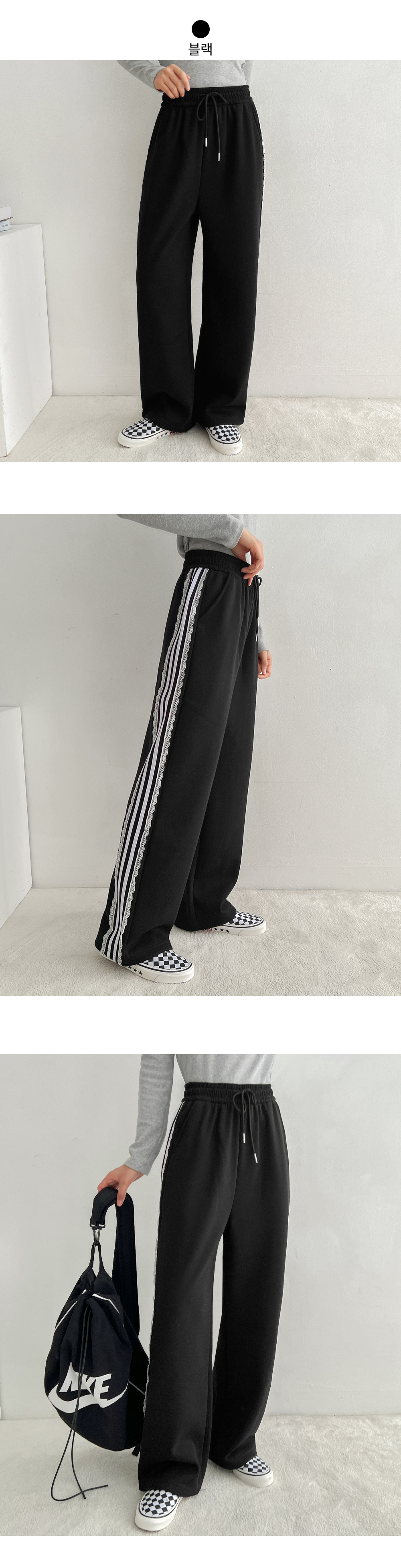 양 사이드 배색 라인과 레이스 디테일이 포인트가 되어주는 트렌디한 밴딩 팬츠에요.