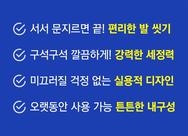 손 댈 필요 없이 서서 편안하게 씻으세요!