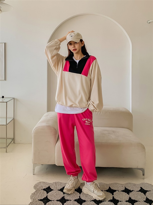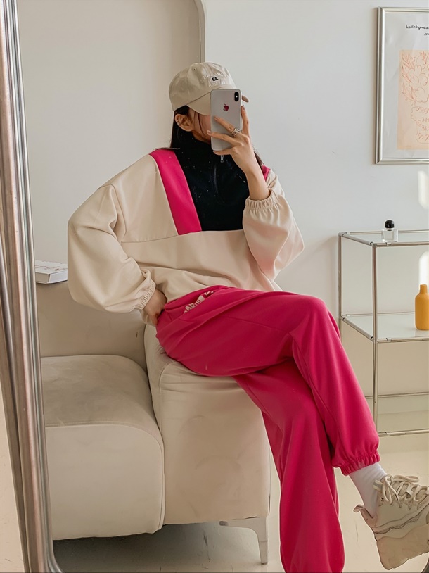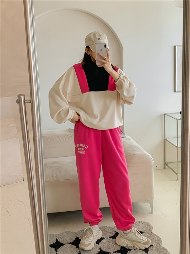 쨍한 네온 색감이 시선을 확 사로잡는! 트레이닝복 세트~!