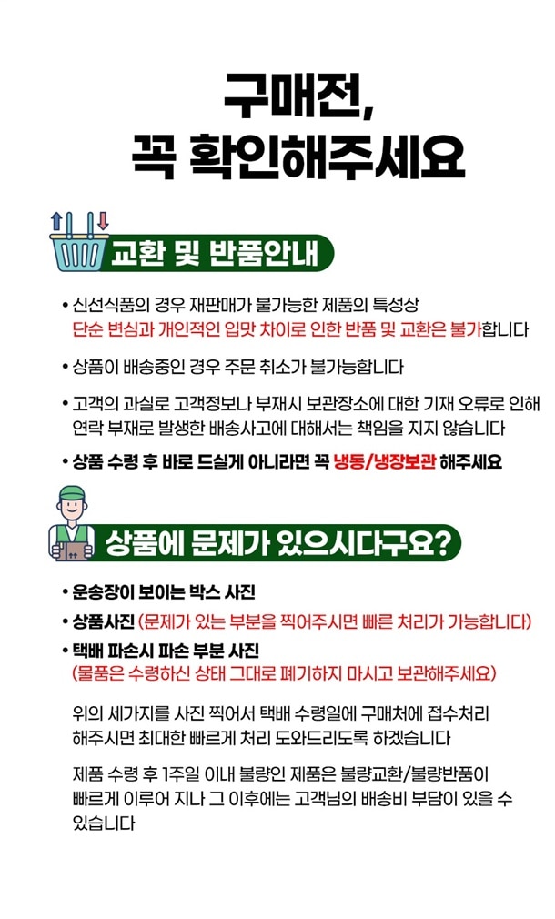 · 상품 불량 사유와 사진을 남겨 주시면 빠른 처리가 가능합니다.