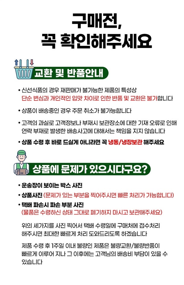 · 상품 불량 사유와 사진을 남겨 주시면 빠른 처리가 가능합니다.