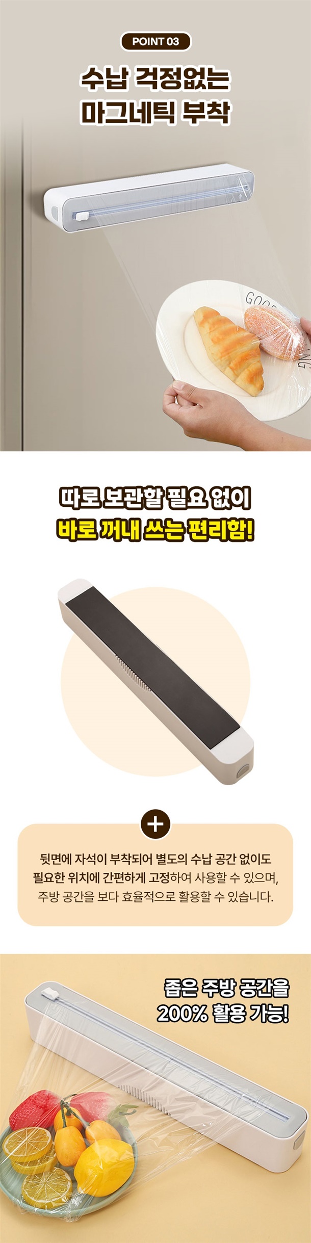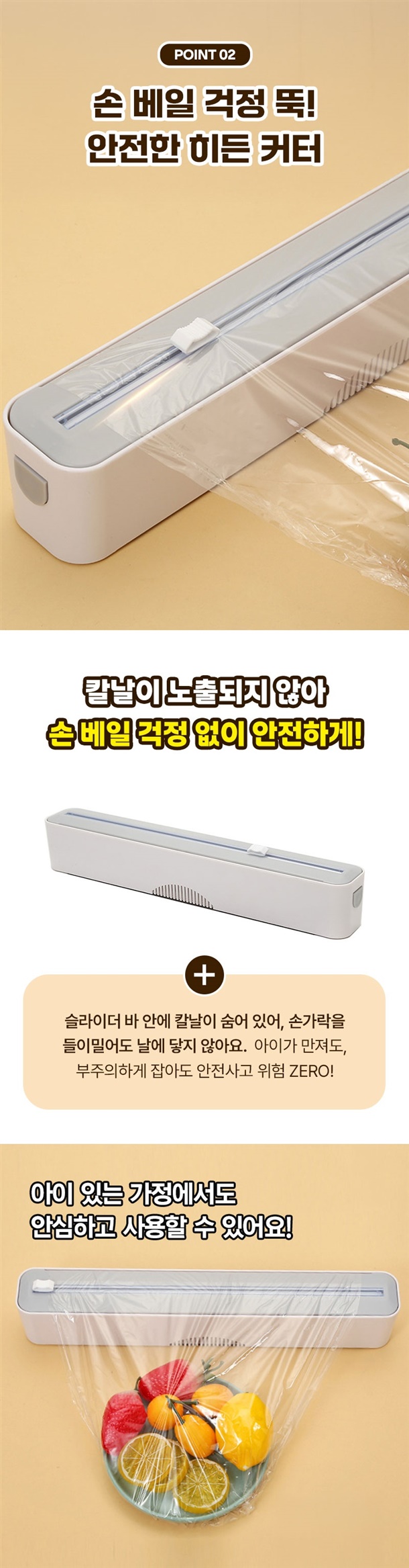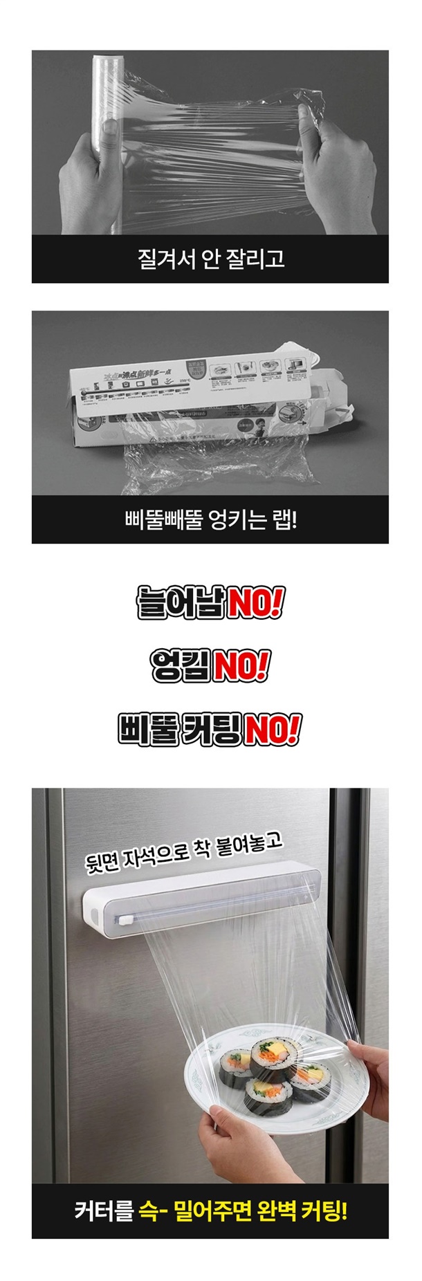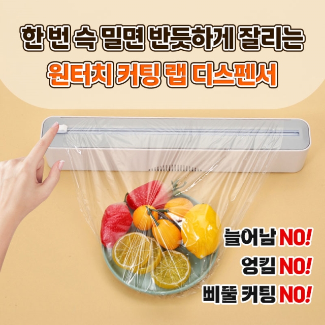 이건 그냥 랩을 당긴 다음 위에 있는 커터를 슥 밀어주기만 하면 랩이 반듯하게 딱 잘립니다