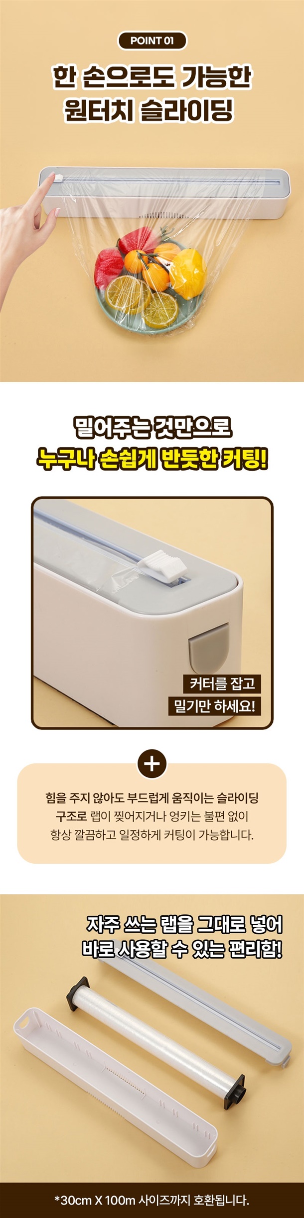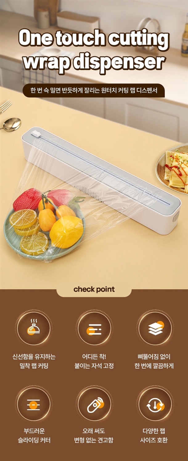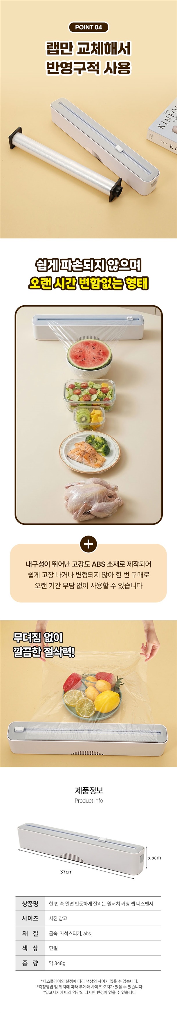 이건 그냥 랩을 당긴 다음 위에 있는 커터를 슥 밀어주기만 하면 랩이 반듯하게 딱 잘립니다