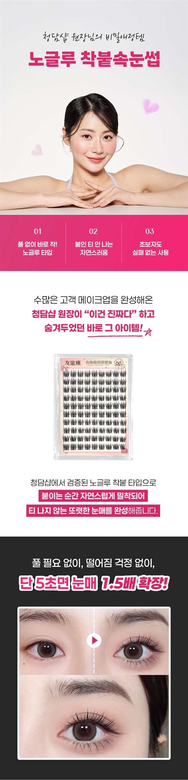 근데 이건요, 진짜 그냥 얹는다는 표현이 딱 맞아요. 글루가 없으니까 손에 묻을 것도 없고, 붙였다 떼도 눈 따갑지도 않고요. 하루 종일 붙이고 있어도 떨어질 걱정 안 해도 되고, 모임 나가서도 다들 연장 너무 잘됐다해요 연장 아니라 하면 깜짝놀라더라고요ㅋㅋ